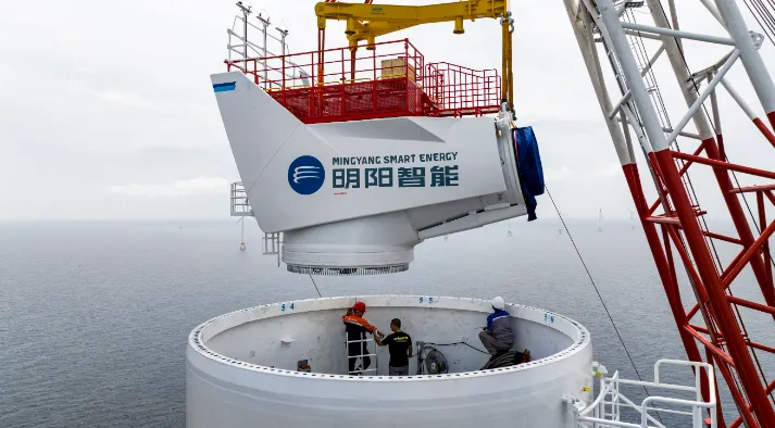 风电装备制造:主营陆上及海上风电机组,覆盖3-18MW功率范围,海上风电新增装机量连续多年位居国内前列,主导产品包括抗台风漂浮式风机(全球首台5MW以上机组)及“风渔共生”系统(如“明渔一号”深海网箱)。