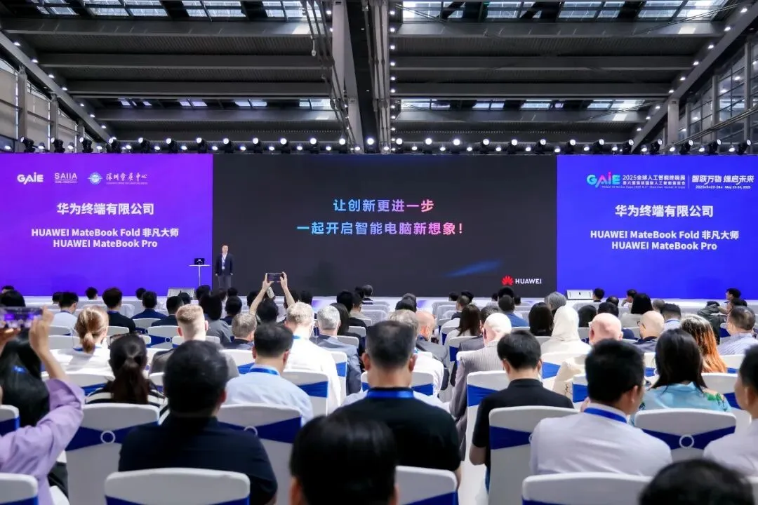 (2025全球人工智能终端展暨第六届深圳国际人工智能展,华为 HUAWEI MateBook Pro 和 HUAWEI MateBook Fold 凡大师两款全新发布的鸿蒙电脑首发首展。)