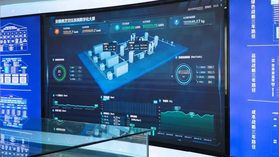 在美的集团旗下安徽美芝工厂,通过“AI能源托管”,实现空压站节能超30%,EC风机节能达59.97%,车间末端AI大模型测漏管理系统再节能近10%,并成功挂牌全国不超百家的“一级能效压缩空气站”以及安徽省绿色工厂。