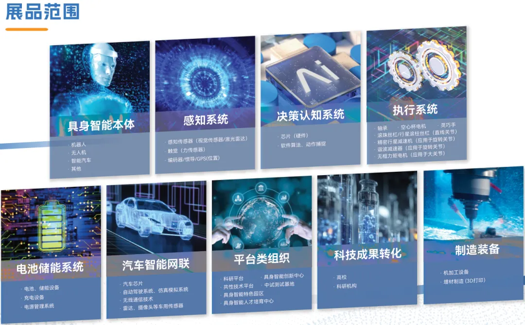 CIEI 2026作为聚焦“具身智能”全产业链的前沿融合型国际展会平台,旨在构建一个超越传统展览的价值新枢纽。展出面积将达30,000㎡,预计吸纳参展商超500+,专业观众50,000名。展品范围覆盖9大核心领域,包括:具身智能本体、感知系统、决策认知系统、执行系统、电池储能系统、汽车智能网联、平台类组织、科技成果转化、制造装备。届时,将同期同地多展联动,打通产业链上下游。