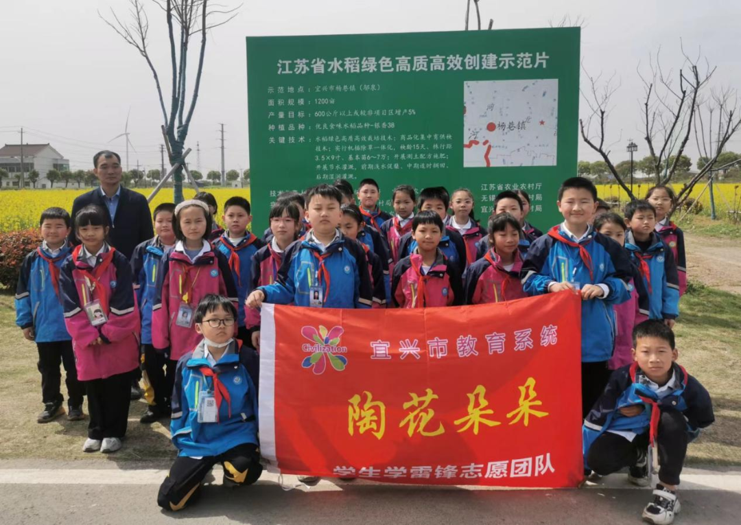 四月春恰好,研学正当时。4月13日上午,宜兴市教育局、苏南食材公司、宜兴市杨巷小学联合举办“践行‘大食物观’理念,开启溯‘食’之旅”研学活动,我校四年级陶花朵朵志愿团队的少先队员们在辅导员的带领下参加活动。宜兴市教育局基建后勤中心副主任戚军民、杨巷镇副镇长郑利骏、杨巷小学校长朱壬玺、宜兴市百粮农业科技有限公司(以下简称百粮农业)董事长路伯良、苏南食材宜兴分公司负责人邓勇出席活动。