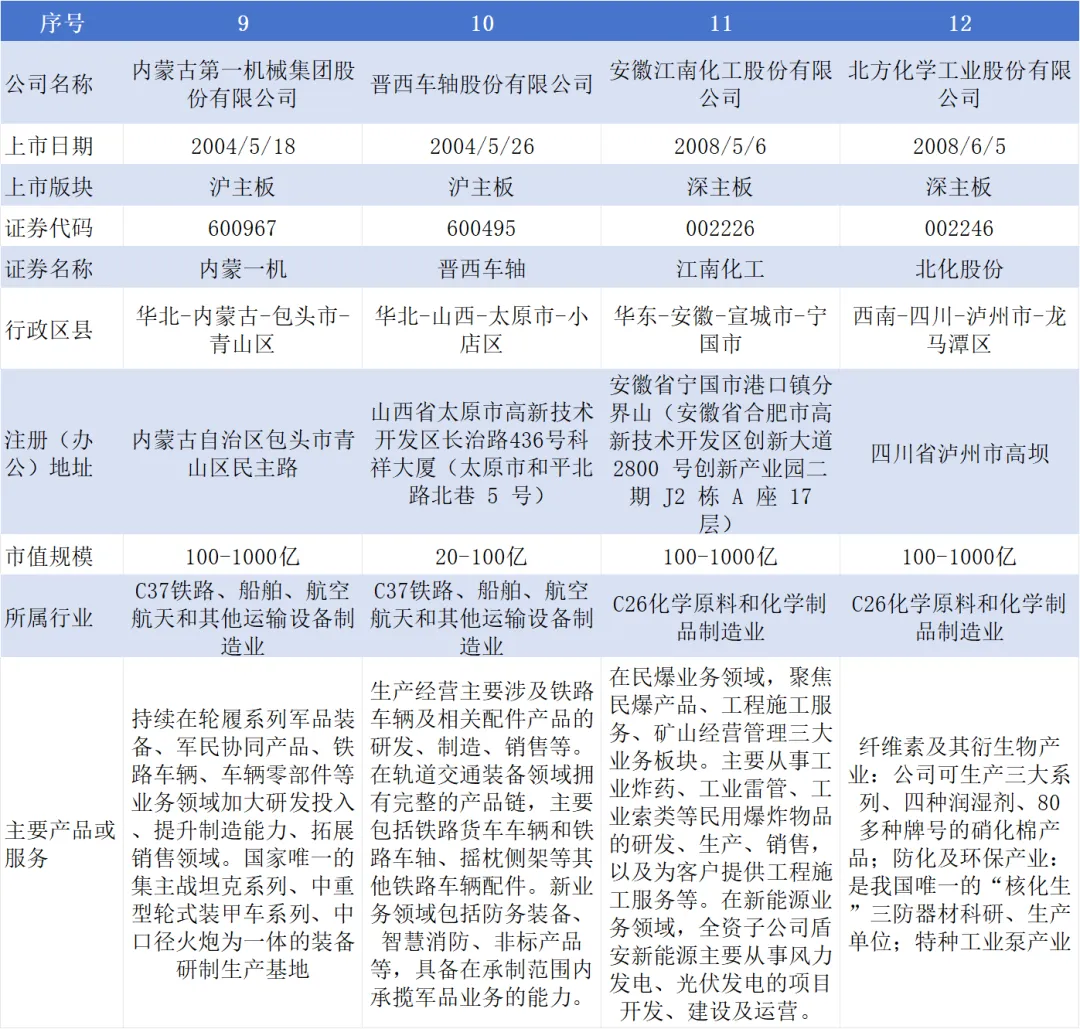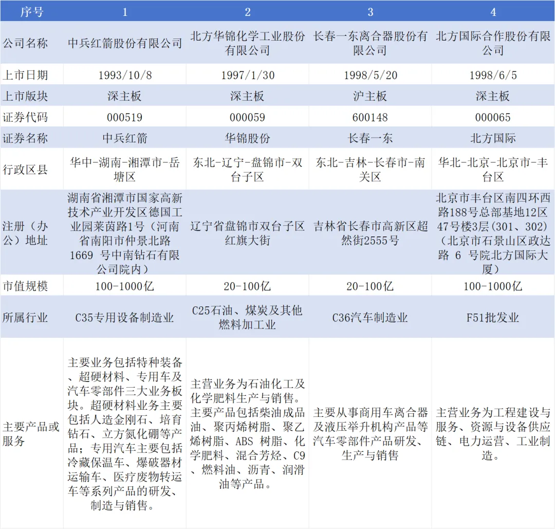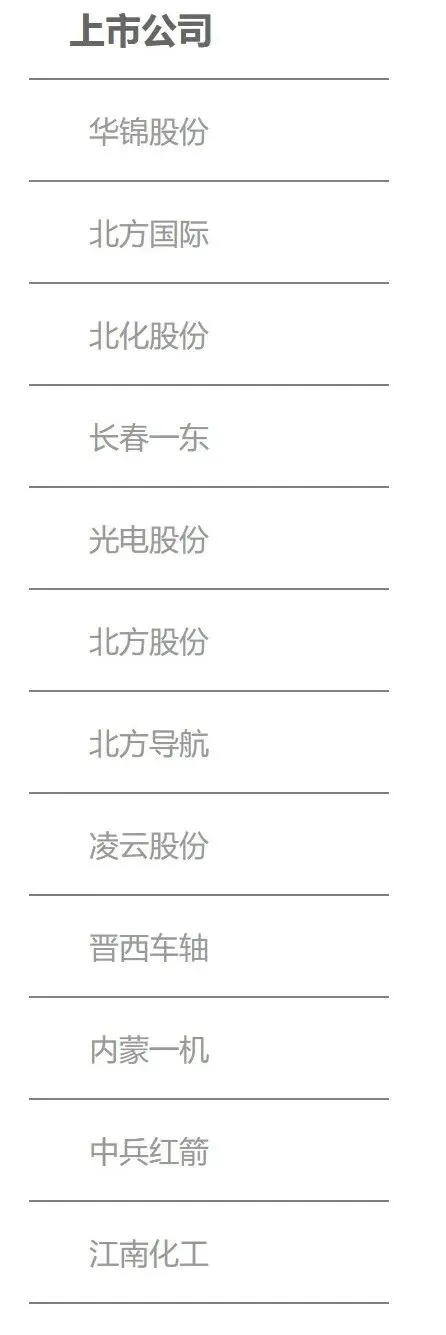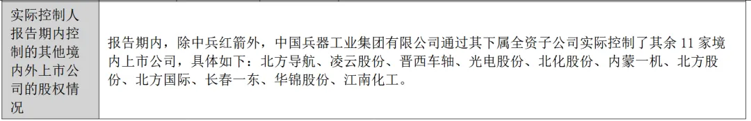 中兵红箭、华锦股份、长春一东、北方股份、北方导航、凌云股份、光电股份、内蒙一机、晋西车轴、江南化工、北化股份2024年年报披露的实际控制人为中国兵器工业集团有限公司,报告期内控股和参股的其他境内外上市公司的股权情况进行了完整披露。