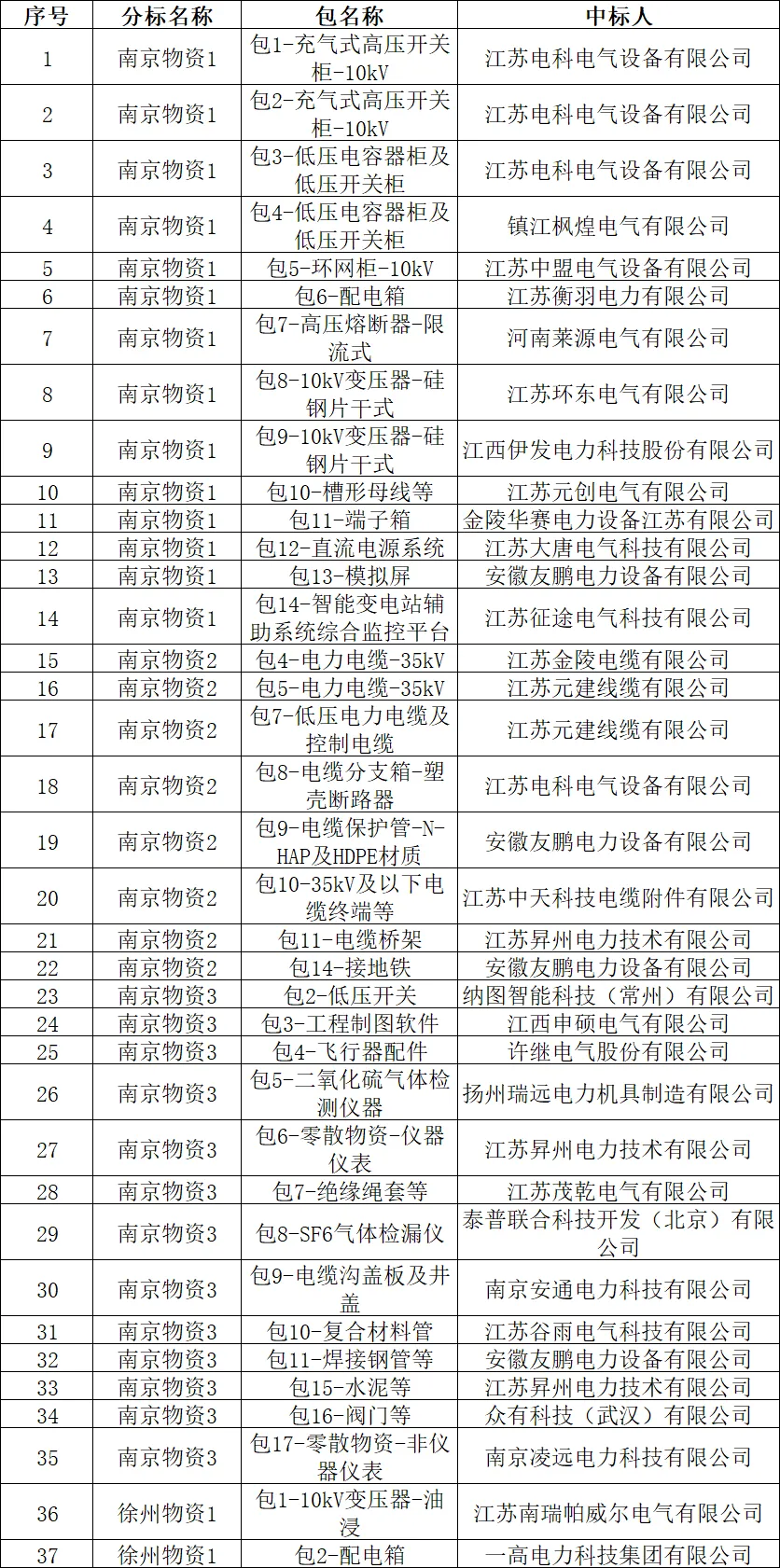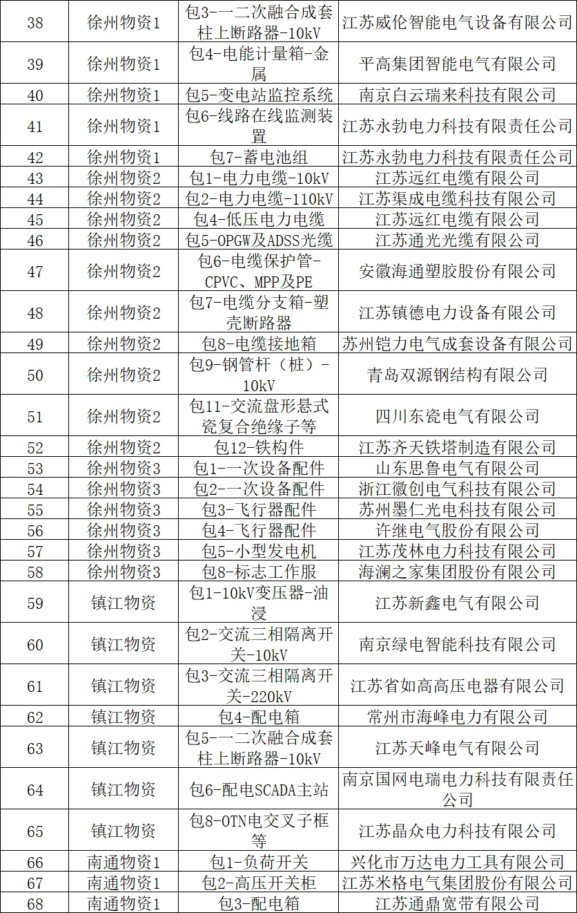 国网江苏电力2025年原集体企业第十一次物资公开招标采购-3中标结果公告