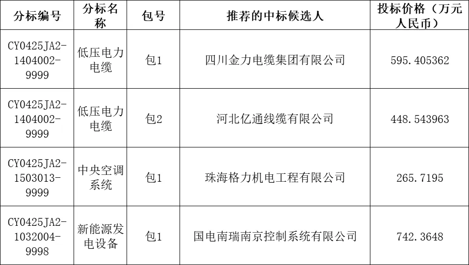 (招标批次编号:CY0425JA2)