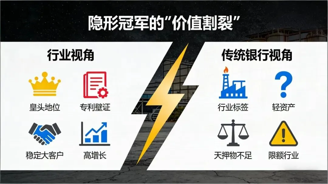 赵总感到一种巨大的割裂:在行业里,他是备受尊敬的“技术权威”和“隐形冠军”;在银行系统里,他却只是一个“资产较轻、行业受控”的普通中小企业主。