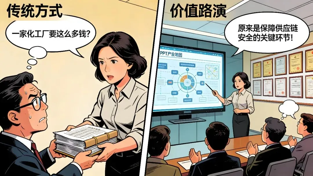 主动定义行业:开场即说:“请允许我花几分钟重新定义我们所在的细分赛道——我们不属于风险集中的‘传统化工业’,而是‘新能源关键材料供应链的安全保障环节’。” 这一定位瞬间拔高了格局。
