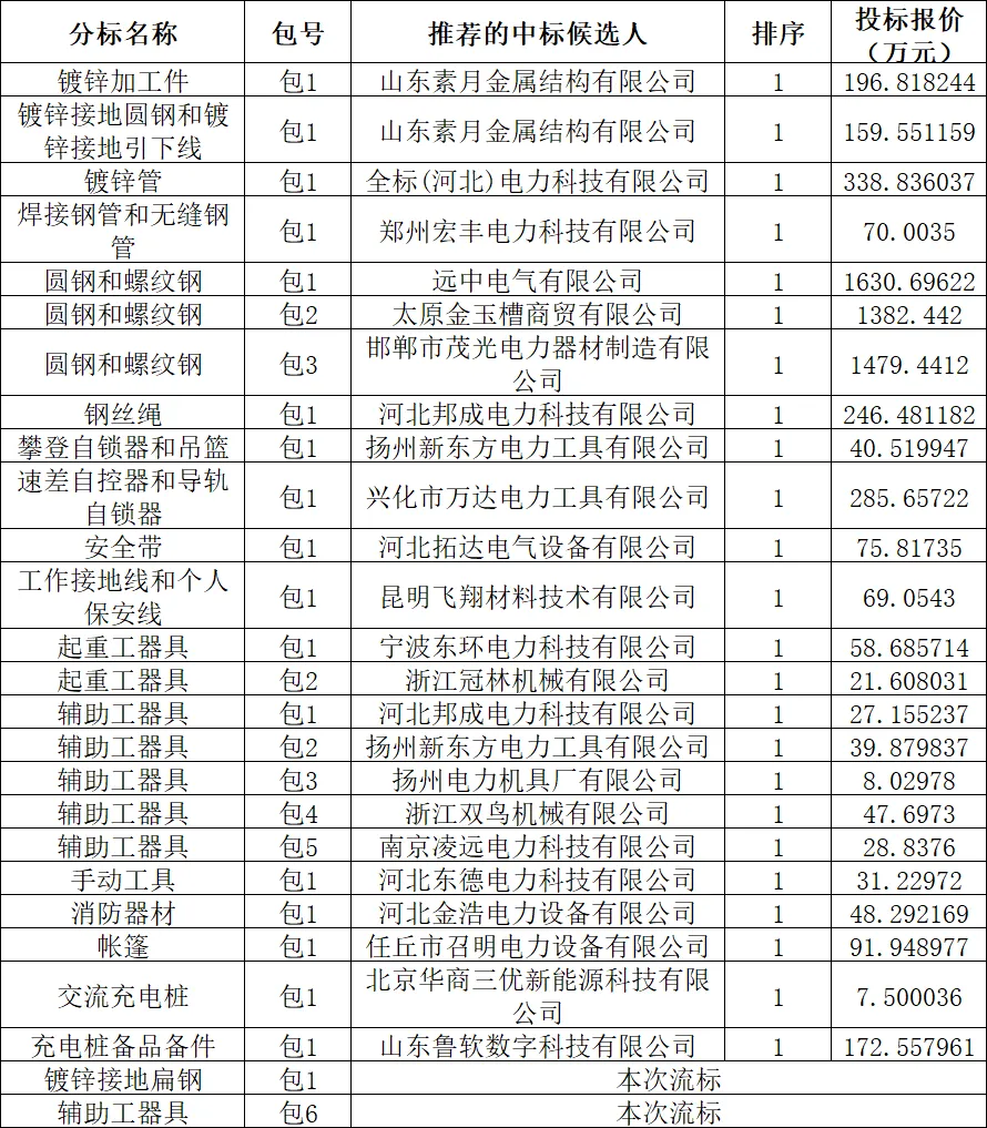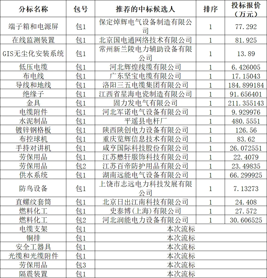 国网山西省电力有限公司子公司2025年第三次物资框架公开招标采购推荐的中标候选人公示