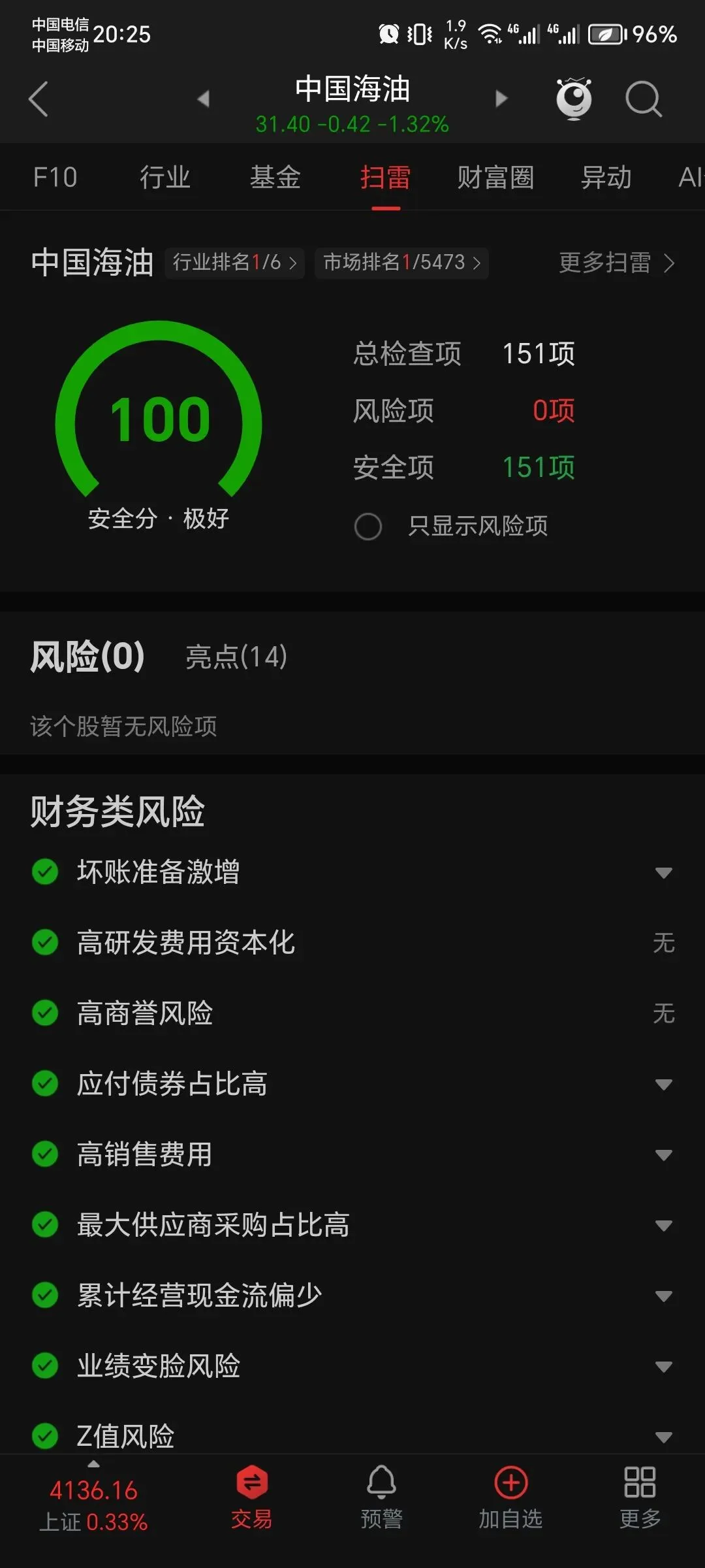 低估判断:2026 年 1 月 23 日,中国海油 A 股价格31.40 元处于低估区间