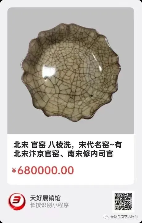 北宋黑釉官窑御笔葵口洗,藏品尺寸: 口径19cm 底径12.5cm,高5.5cm,2025年 8月 6日,经天好评审团评审,以6票优势荣登精品榜,获第182期天好海选精品。来源0145.V。