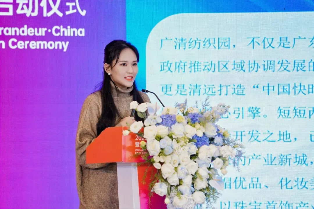 随后,广东省皮具箱包流通协会秘书长张丽颖作为合作单位代表登台发言,表达了对展会及出海联盟的全力支持与深度认可。广东叶子王箱包有限公司品牌总监李子儀则以参展商代表身份分享见解,传递出企业借助平台资源拓展海外市场的积极意愿,彰显了行业企业对本次盛会的高度期待。