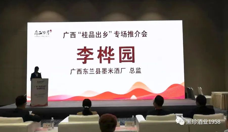 墨米酒厂总监李桦园在广西“桂酒出乡”专场推介会会场做现场推介