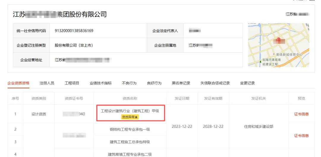 对特级资质企业而言,设计资质是承接重大项目的核心门槛,被标注异常后,不仅无法申请资质许可事项,还会被纳入重点监管名单,投标、接单均受严格限制,在本就僧多粥少的市场中进一步丧失竞争优势。