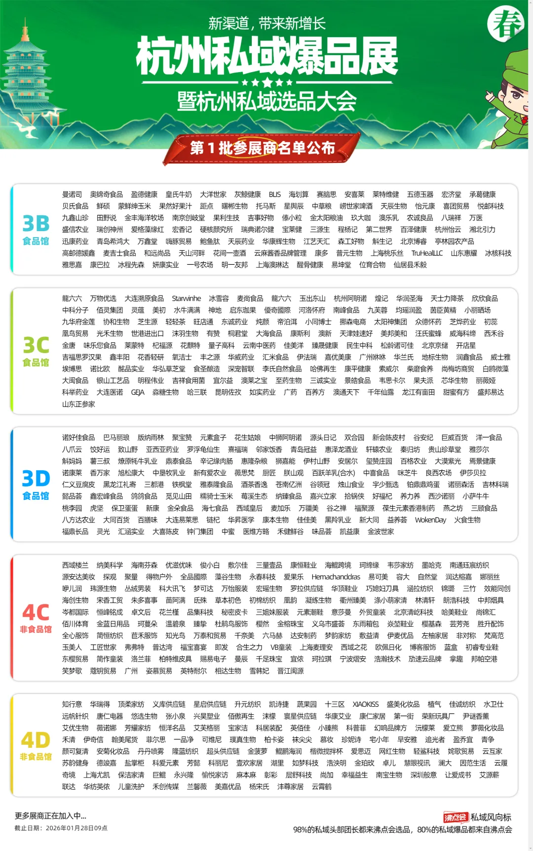 选品环节同样硬核,杭州私域选品博览会严选1000余家优质展商,杭州私域展会展商名单已分批公示,涵盖食品、美妆、母婴等全品类春夏季爆品。展会按品类科学分区,搭配专属攻略地图,更有沸点导师指导选品,头部团长现场拆解爆品逻辑。