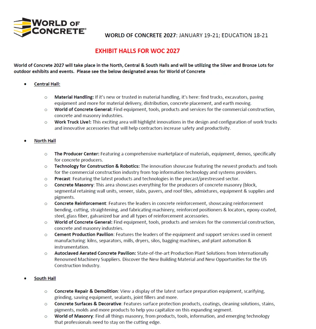 2027年美国混凝土展已启动招商??展会时间:2027年1月19-21日