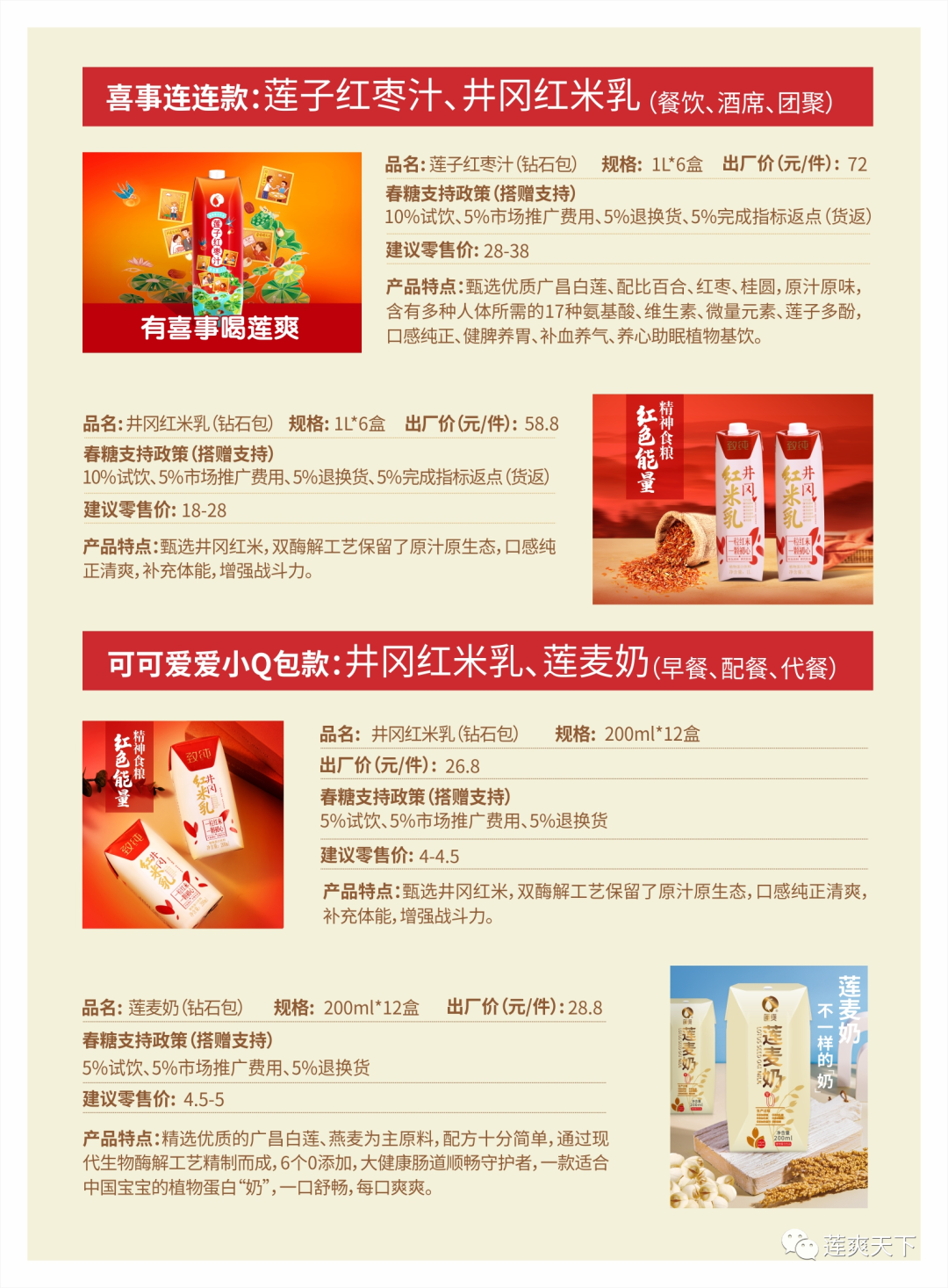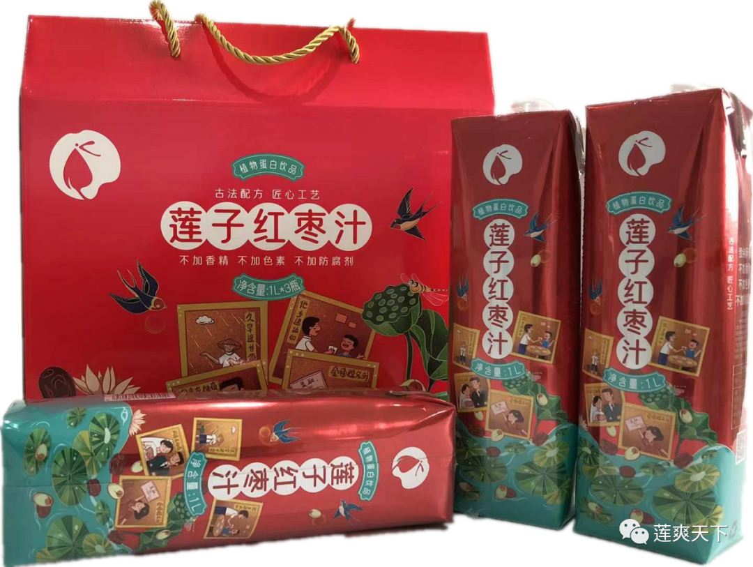 “莲爽”新品莲子红枣汁是以广昌白莲为主要原料,与红枣、桂圆、百合鲜磨而成。不加香精、色素、防腐剂。是纯天然绿色健康饮品