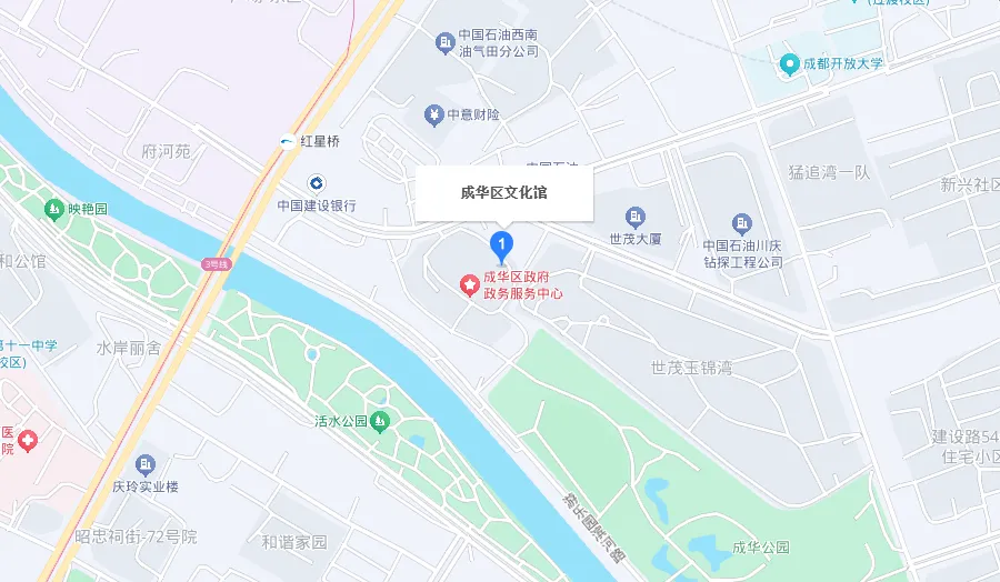 成都市成华区文化馆成立于1998年3月,位于建设北路一段66号4、5楼,紧邻美丽府河、天府熊猫塔,建筑面积4000㎡,设有舞蹈排练厅、声乐室、器乐室、培训室、多功能表演厅、艺术展厅、书画交流室、书画培训室、视听室、曲艺表演厅、非遗展示体验厅、文艺讲座厅等,具备舞蹈、声乐排练、培训、欣赏、视听、体验、驻场活动、交流、培训等场馆服务功能。被评为国家一级文化馆、全国最美文化馆(中心)、长三角及全国部分省市公共文化空间优秀案例、四川省全民艺术普及示范基地、成都市社会科学普及基地。