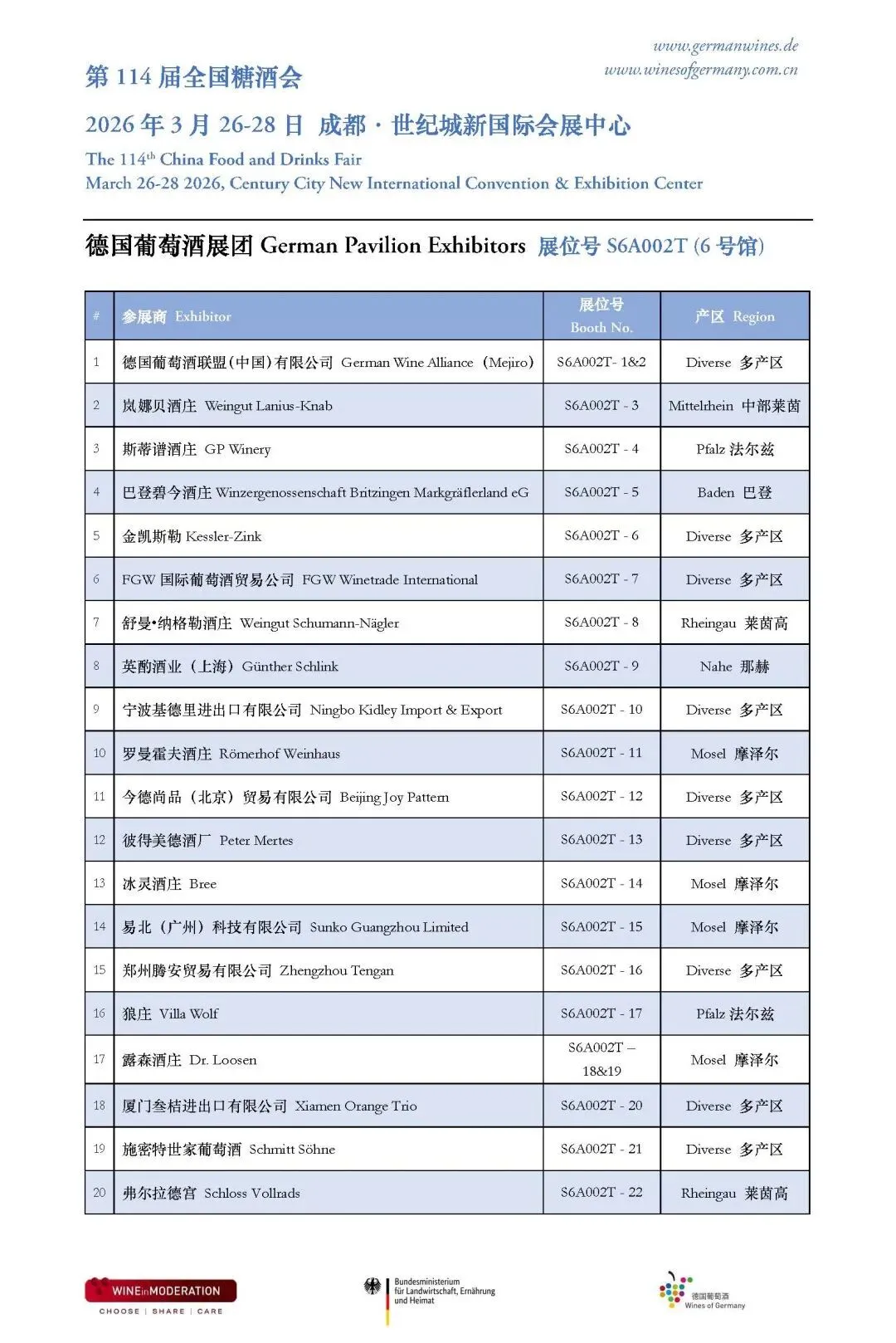 德国葡萄酒展商列表