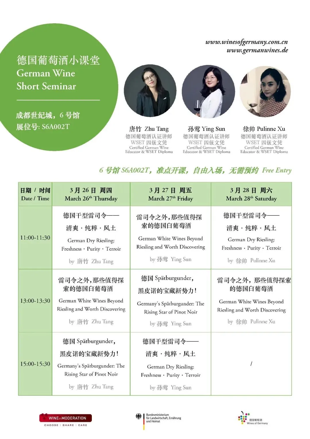 德国葡萄酒展团展位号:S6A002T,6号馆入口处左侧