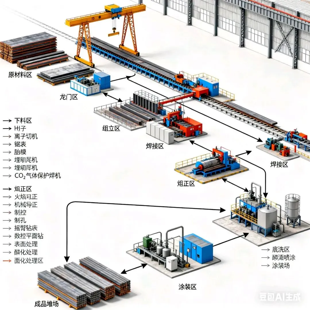 钢构车间设计与加工生产线部署是钢结构制造企业全生命周期的有机整体,二者相互制约、彼此赋能,直接决定企业生产效率与核心竞争力。