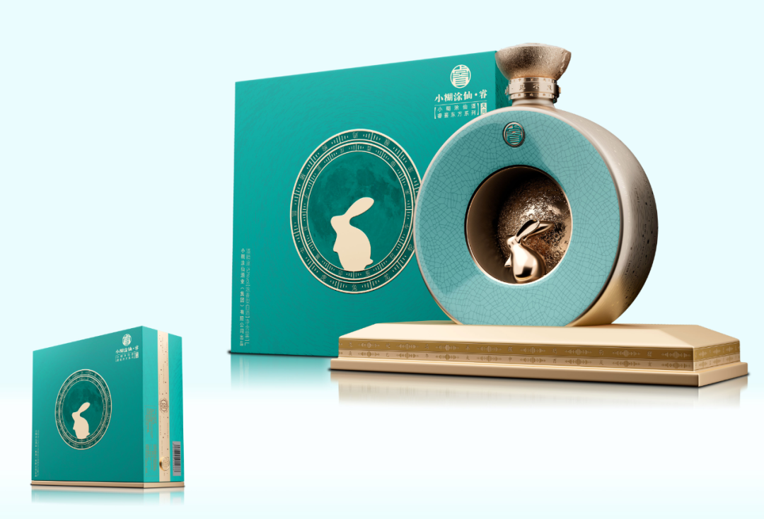 瓶身采用“双面”设计,一面为“睿月望兔”,代表着致敬对浩瀚宇宙的探索;另一面为“司南领航”,代表致敬对未知疆域的探索。瓶周设计融入了同样代表着探索精神的“二十四节气”元素,瓶盖则以月球纹理的设计传递伸手摘星之感。