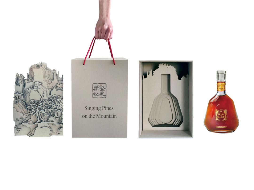 该产品采用透明玻璃瓶,能够更好地展现伏特加的纯度。同时,通过磨砂技术将四川的美景呈现在瓶身上,将西方伏特加与东方风味很好地融合在一起。灰色和白色的结合也充满了东方的内敛与深沉。07、Classic Landscape Limited Edition酒包装这款酒包装是金門高梁酒业有限公司的限量版,以中国古画《万壑松风》为设计灵感,来打造盒子的层次感和空间感,且整个外盒皆采用环保纸。该设计完美弥补了以往在设计美感方面的不足,在享受美酒的同时也能体验到艺术的表达。