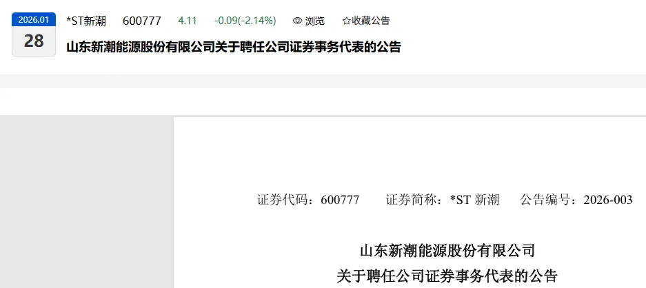 山东新潮能源股份有限公司于2026年1月27日召开第十三届董事会第八次会议,会议审议通过了《关于聘任公司证券事务代表的议案》,同意聘任孙雷为公司证券事务代表(简历附后),任期三年,自本次董事会审议通过之日起至本届董事会届满为止。