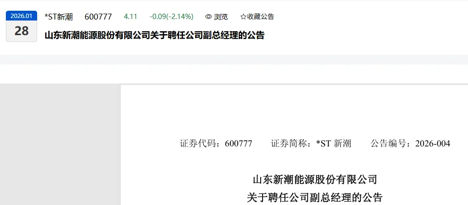 山东新潮能源股份有限公司于2026年1月27日召开第十三届董事会第八次会议,会议审议通过了《关于聘任公司副总经理的议案》,经董事会提名委员会任职资格审查通过,同意聘任李开隆为公司副总经理(简历附后),任期三年,自本次董事会审议通过之日起至本届董事会届满为止。