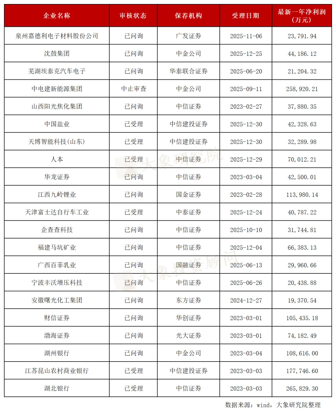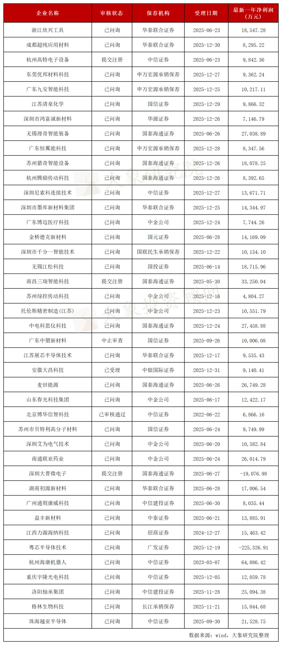 创业板 IPO排队企业名单