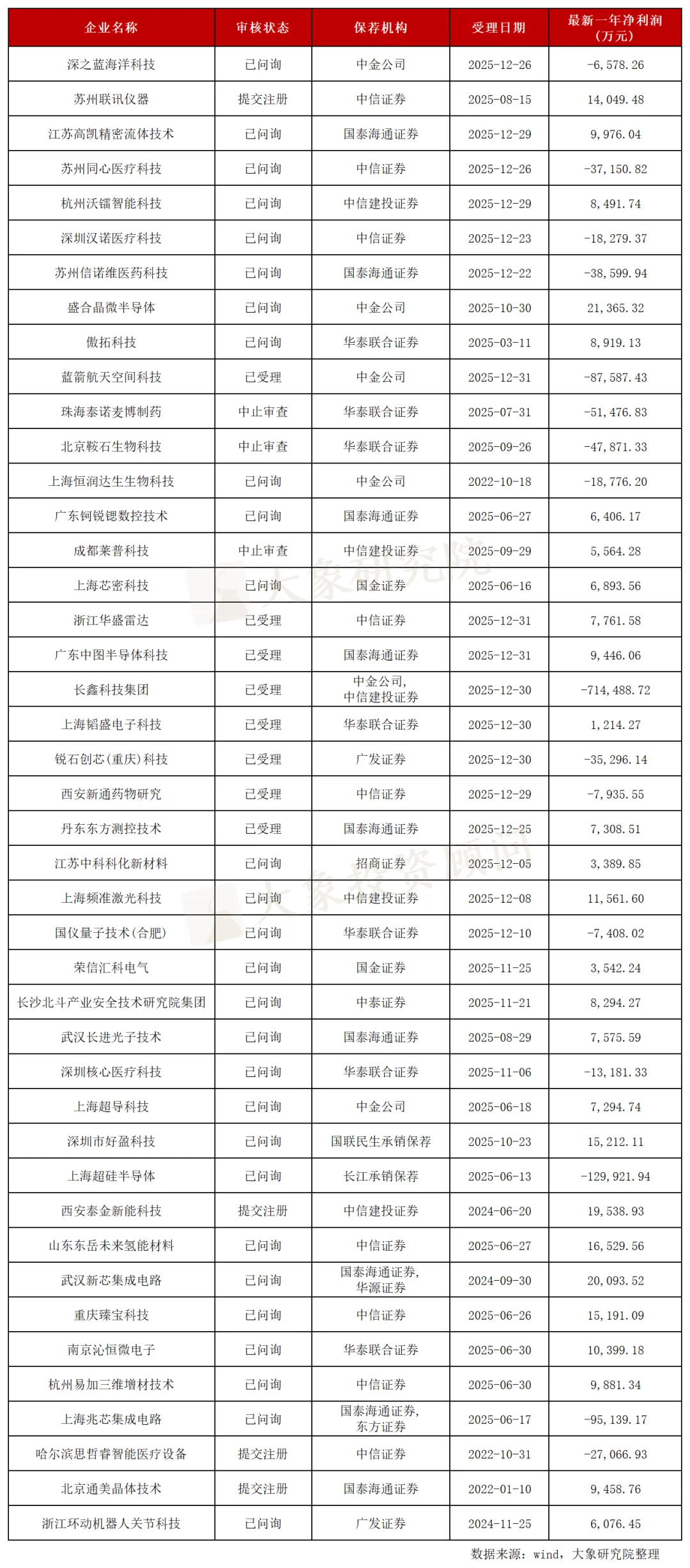 科创板 IPO排队企业名单