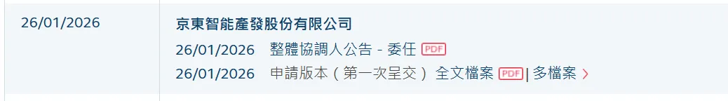 2026年1月26日,港交所官方披露信息显示,京东智能产发股份有限公司(以下简称“京东产发”)日前已递交招股书,准备上市。此前,京东产发在2023年3月已递交招股书,中间上市一度暂停,这是时隔近3年后重启上市。