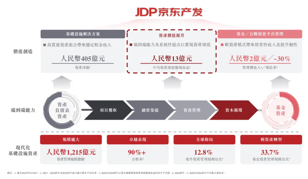 根据招股说明书,截至2025年9月30日,京东产发资产管理规模总额为1,215亿元,其中12.8%位于境外;京东产发的总建筑面积为2710万平方米。京东产发开发、持有或管理庞大的现代化基础设施资产组合,包括259个物流园、20个产业园以及6个数据中心基础设施。
