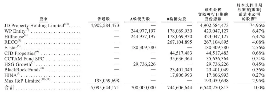 截至招股书披露日,京东集团通过其全资子公司Jingdong Technology Group Corporation及JD Property Holding Limited间接持有京东产发49.03亿股股份的权益,约占京东产发已发行股本的74.96%。此外,Max I&P Limited持有京东产发已发行股本的2.95%,刘强东为该公司唯一董事及持有其所有已发行股本的信托创立人。