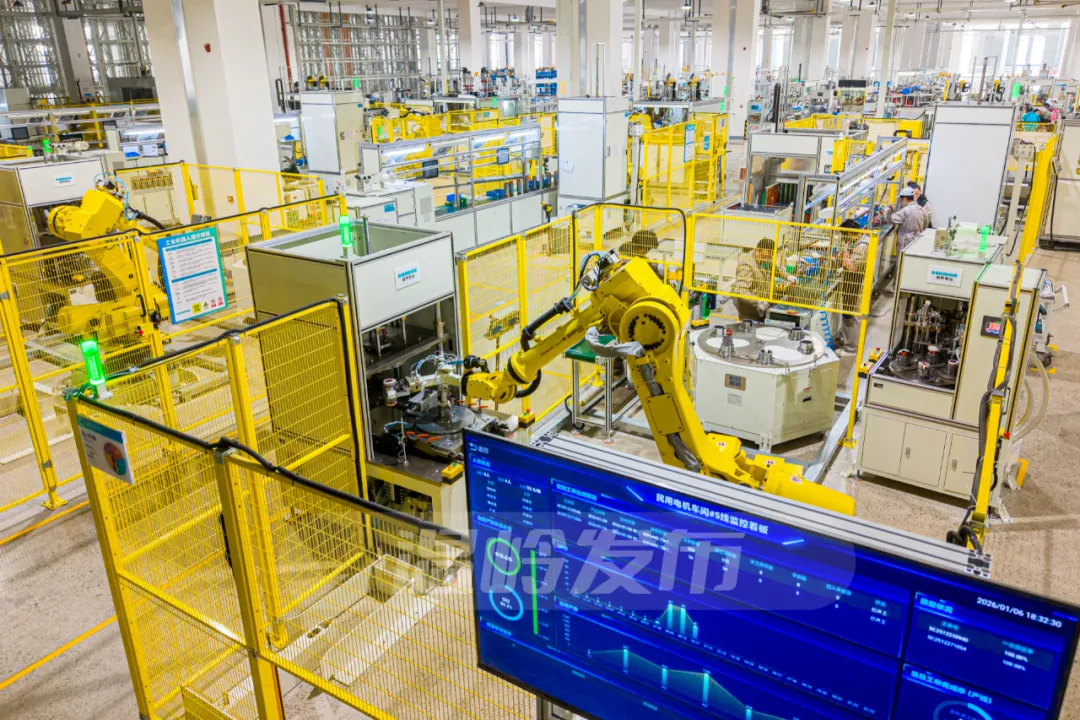 电机车间内,10多条自动化生产线搭配20多台智能机器人,实现了绕线、嵌线、整形、绑线等多个环节无人化,用工减少60%,生产效率提升80%,产品合格率达到99.8%以上。