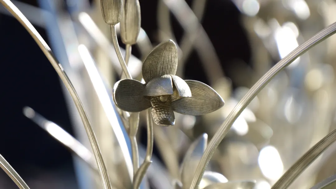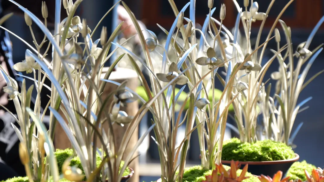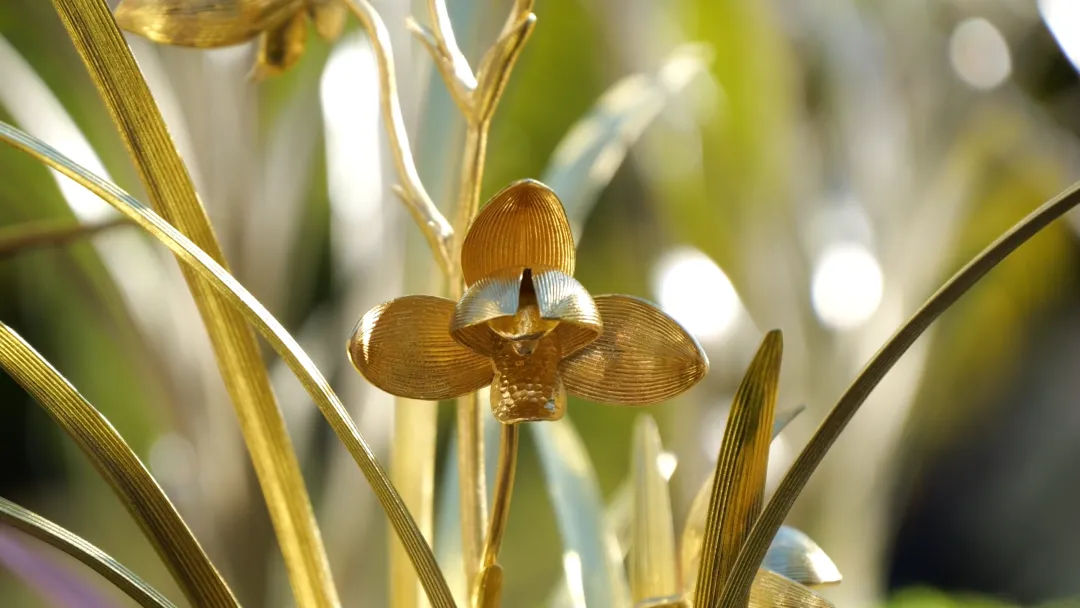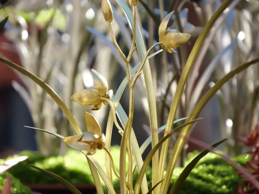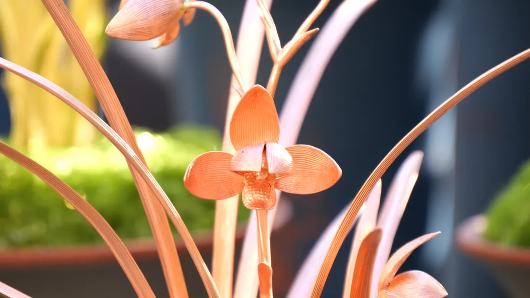 “特金奖我们选用的是紫铜的一个材质,金奖是选用了黄铜的材质,银奖是用了白铜。一个人工三天时间才能做出来一盆,我们组织了十几个人,一直从早到晚,每天都在赶制。制作比较难的一点,就是要把真实兰花的花瓣、叶片的脉络刻画出来,同时要体现花开的形状、神态等,这些都要做到和真实的兰花非常接近。”