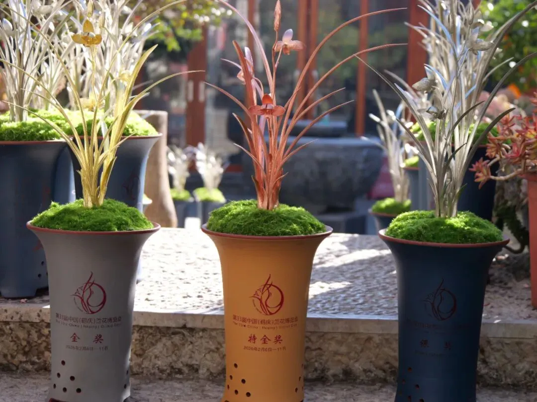 此次兰博会,共设置特金奖33名,金奖50名,银奖65名,铜奖87名,纪念奖30名。奖品以荷瓣兰花为原型,结合鹤庆银器锻制技艺设计手工制作,突出展示鹤庆银铜器之美与兰文化底蕴。