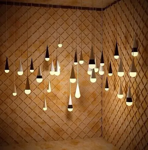 看着美味的冰淇淋甜筒,化为一个个自天花板垂吊而下的吊灯,这画面真的太吸眼球! 别管灯泡进到嘴里能不能拿出来,都想抬头咬一口!
