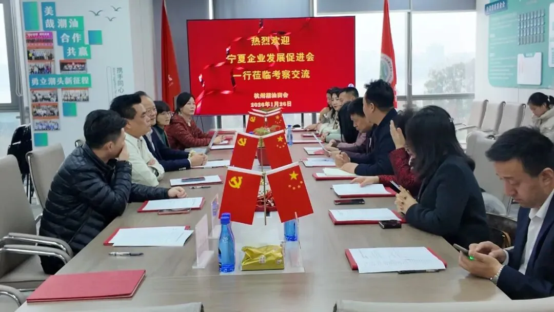 每到一处,参访团一行都受到了各单位的热情接待。在杭州潮汕商会,参访团与商会负责人围绕商会建设运营、会员服务体系搭建、跨区域商协会资源联动、特色产业培育等方面展开深度座谈。杭州潮汕商会分享了在凝聚商会力量、赋能会员企业、推动潮商文化与商业融合发展的宝贵经验,参访团也介绍了宁夏的产业特色、营商环境及宁夏企业发展促进会的相关情况,双方就未来建立常态化沟通机制、促进双方会员企业之间信息互通资源共享的方面达成共识。