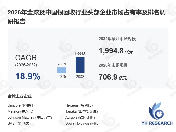 以下内容来自恒州诚思YHResearch出版的《2026年全球及中国银回收行业头部企业市场占有率及排名调研报告》,同时提供英文,日文,韩文等不同语种版本报告。