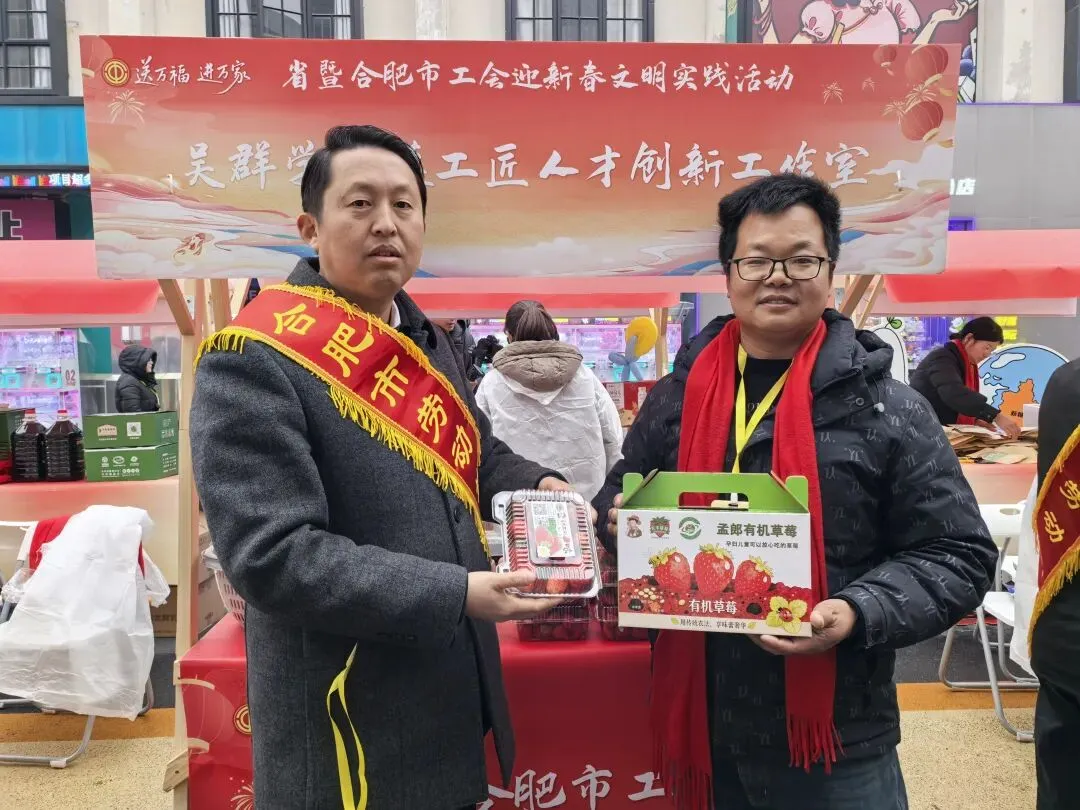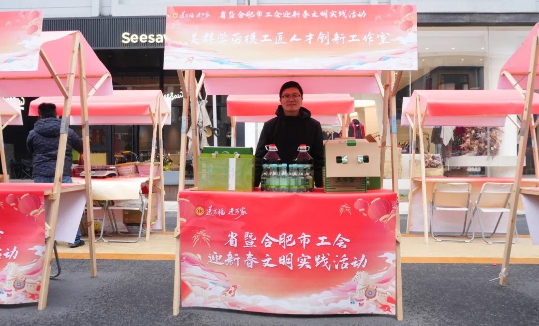 1月25日下午,省暨合肥市总工会迎新春文明实践活动在合肥市新粮仓文创街区正式启幕,活动以“我们的节日 —— 欢欢喜喜过大年”为主题,组织劳模产品参展,让好物从田间直达职工手中,安徽海轩文化集团吴群学劳模工匠人才创新工作室应邀参加。