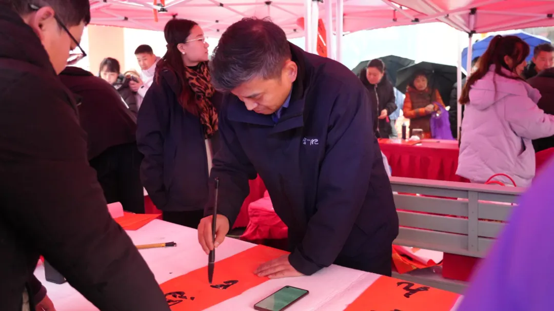 此次活动以工会为纽带,兼顾优质农产品推广与传统文化传承。书法家现场挥毫送福,各体春联暖意融融,市民排队领取。