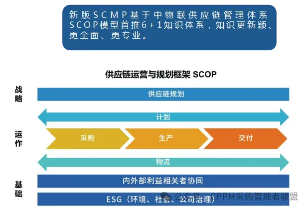 新版“供应链管理专家(SCMP)”知识体系采用6+1模式,包含3册必修教材《供应链运作》《供应链规划》《供应链领导力》、3册选修教材《物流管理》《计划管理》《采购管理》、1册术语集《供应链术语》。