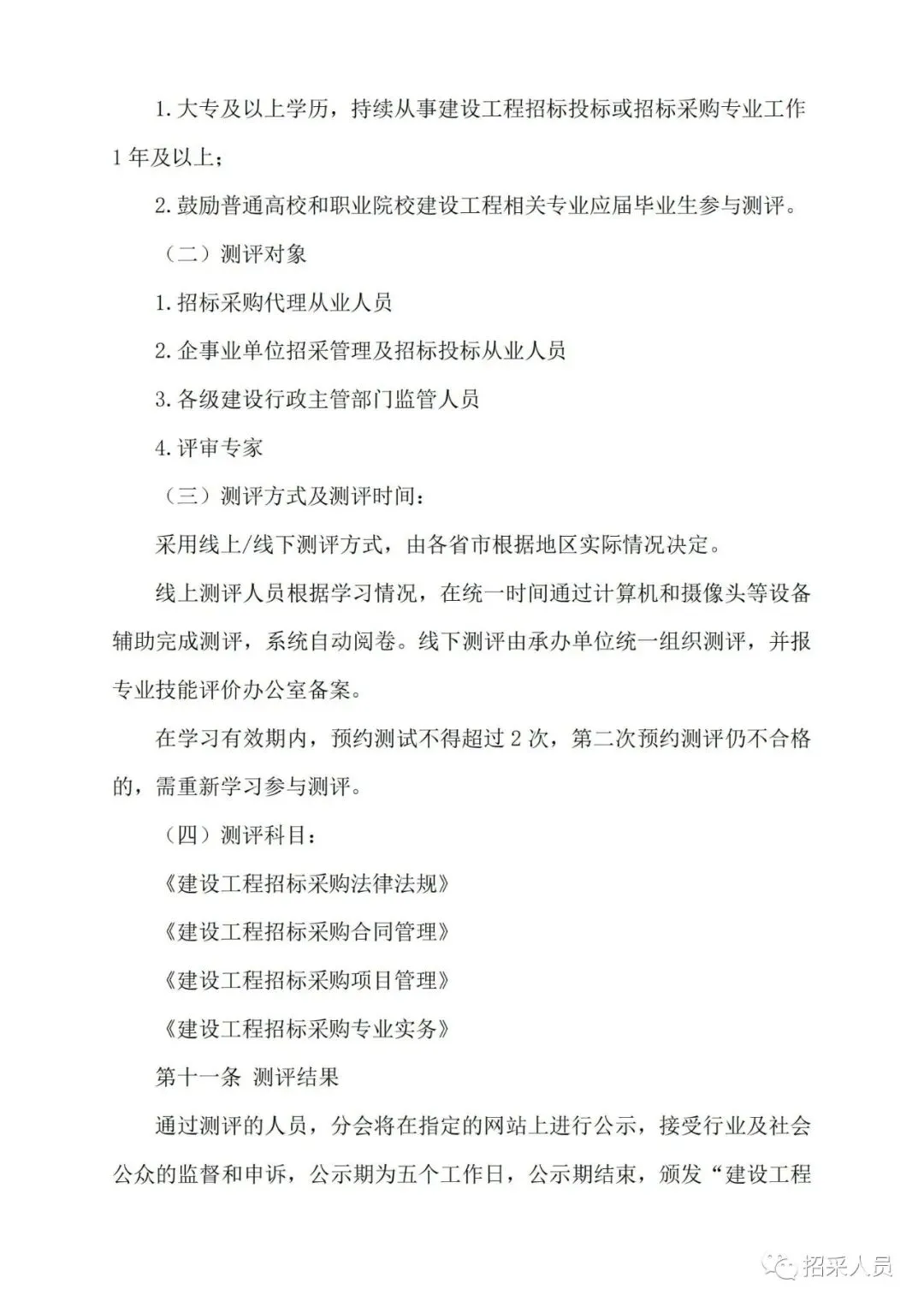 【相关文件】关于印发《建设工程招标采购从业人员职业能力测评管理办法》(试行)的通知https://fh.jzyzx.com.cn/site/news/detail/15847d75-9536-4f74-96b9-242c391317ca