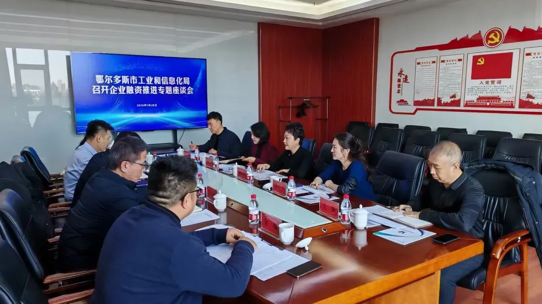 为深入贯彻落实普惠金融发展政策,精准破解企业融资痛点堵点,搭建政银企高效沟通桥梁,1月28日,鄂尔多斯市工业和信息化局在市中小企业公共服务平台组织召开“企业融资推进”专题座谈会。市工信局二级调研员郝宏丰主持会议,相关科室、乌海银行、鄂尔多斯银行、市融资担保公司、内蒙古亿正化工有限责任公司相关负责人共同参加。