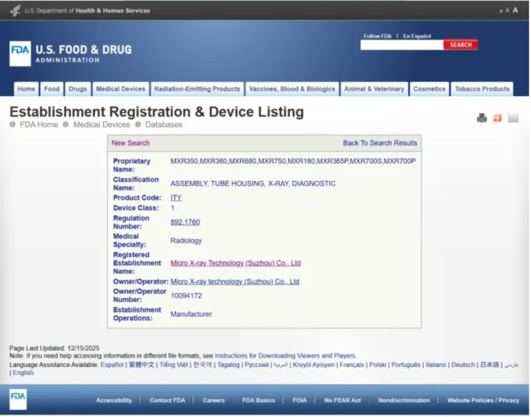 微睿科技(苏州)有限公司,多款高端CT球管和DR球管产品获得美国市场准入。