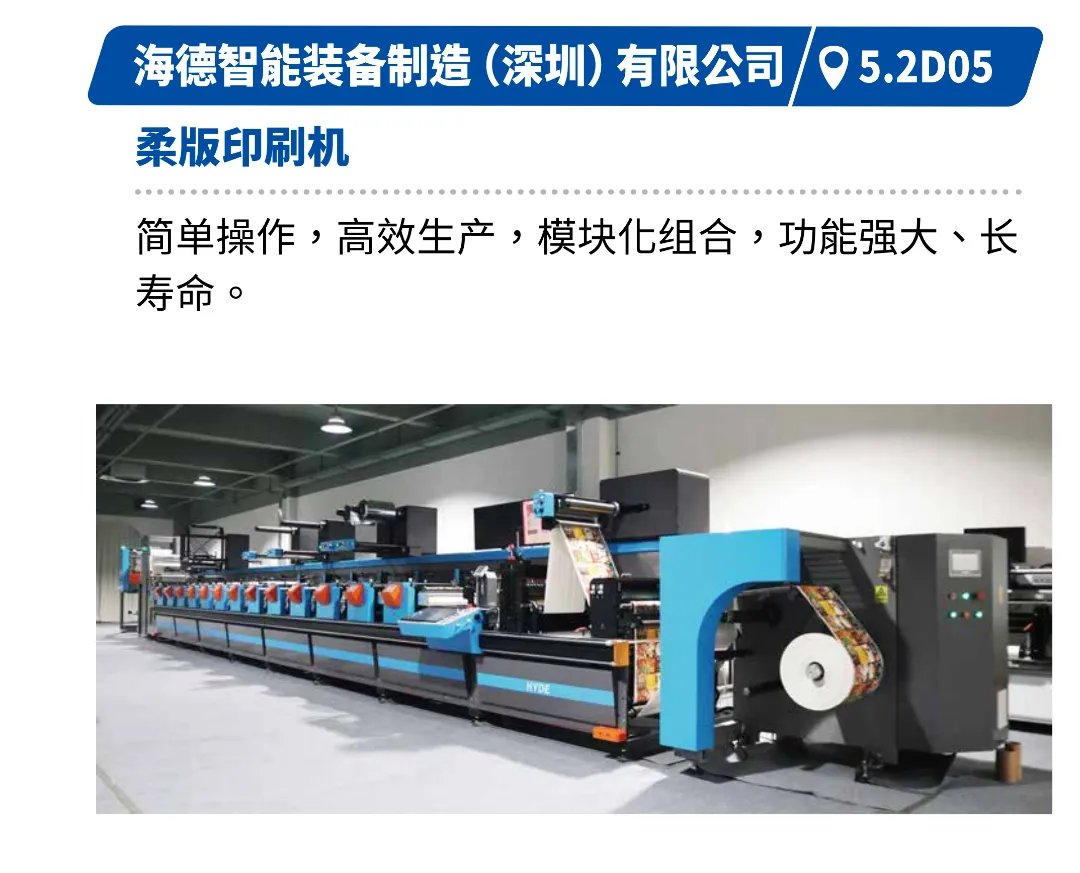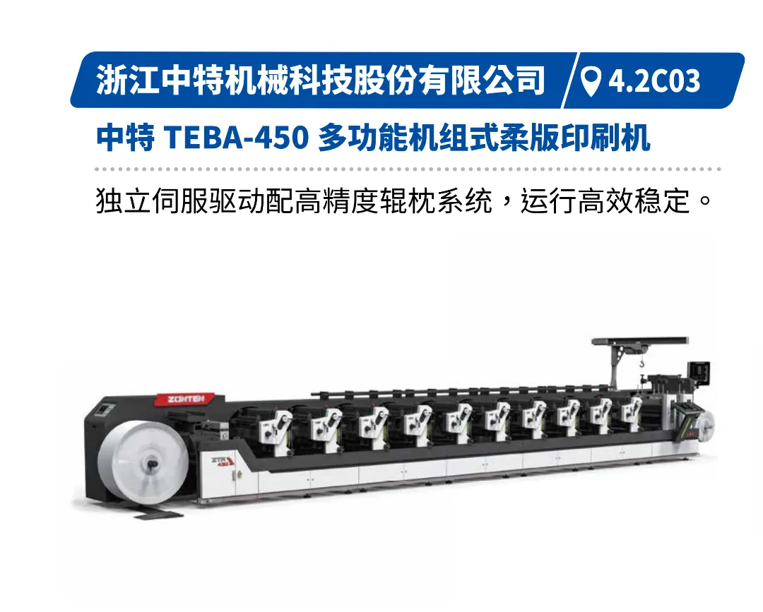 线路聚焦柔版印刷在环保与品质方面的双重优势,展现其采用水性油墨、适应广泛材料及输出稳定品质的特点。中特的多功能机组式柔版印刷机、欧米特的高精度柔版印刷机、炜冈的机组式柔性版印刷机、前润的全轮转高速标签印刷机等,将体现其在套准精度、换版效率与浪费控制方面的技术突破,助力企业以更可持续的方式满足高端市场与品牌方需求。