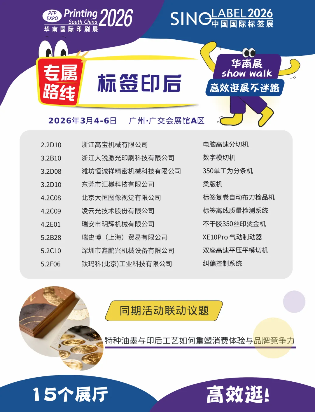 2026年,展会创新推出“华南展Show Walk”主题参观路线,为您系统化梳理标签生产关键环节与未来趋势,打造高效、沉浸式的探索体验之旅。