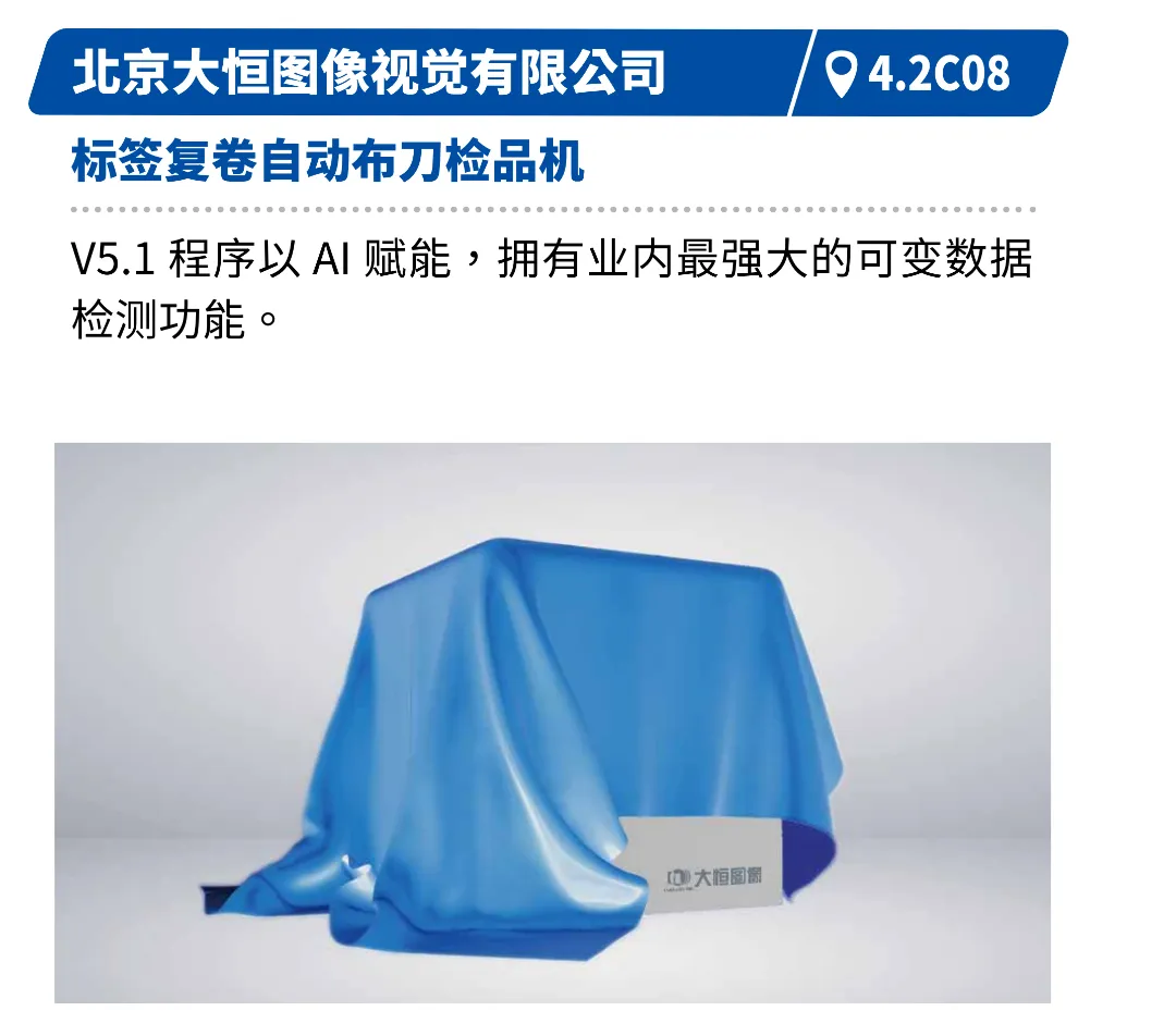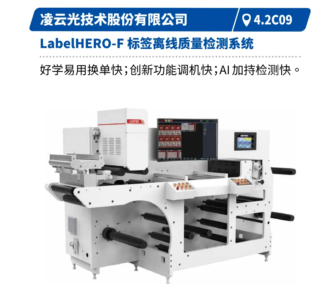 深入印后环节,展示模切、烫金、检测、品控等工序的智能化设备如何成为产品增值与品质保障的关键。凌云光的标签离线质量检测系统、北京大恒的标签复卷自动布刀检品机、大锐激光的数字模切机等创新技术,将呈现其在提升效率、一致性与降低综合成本方面的核心价值。