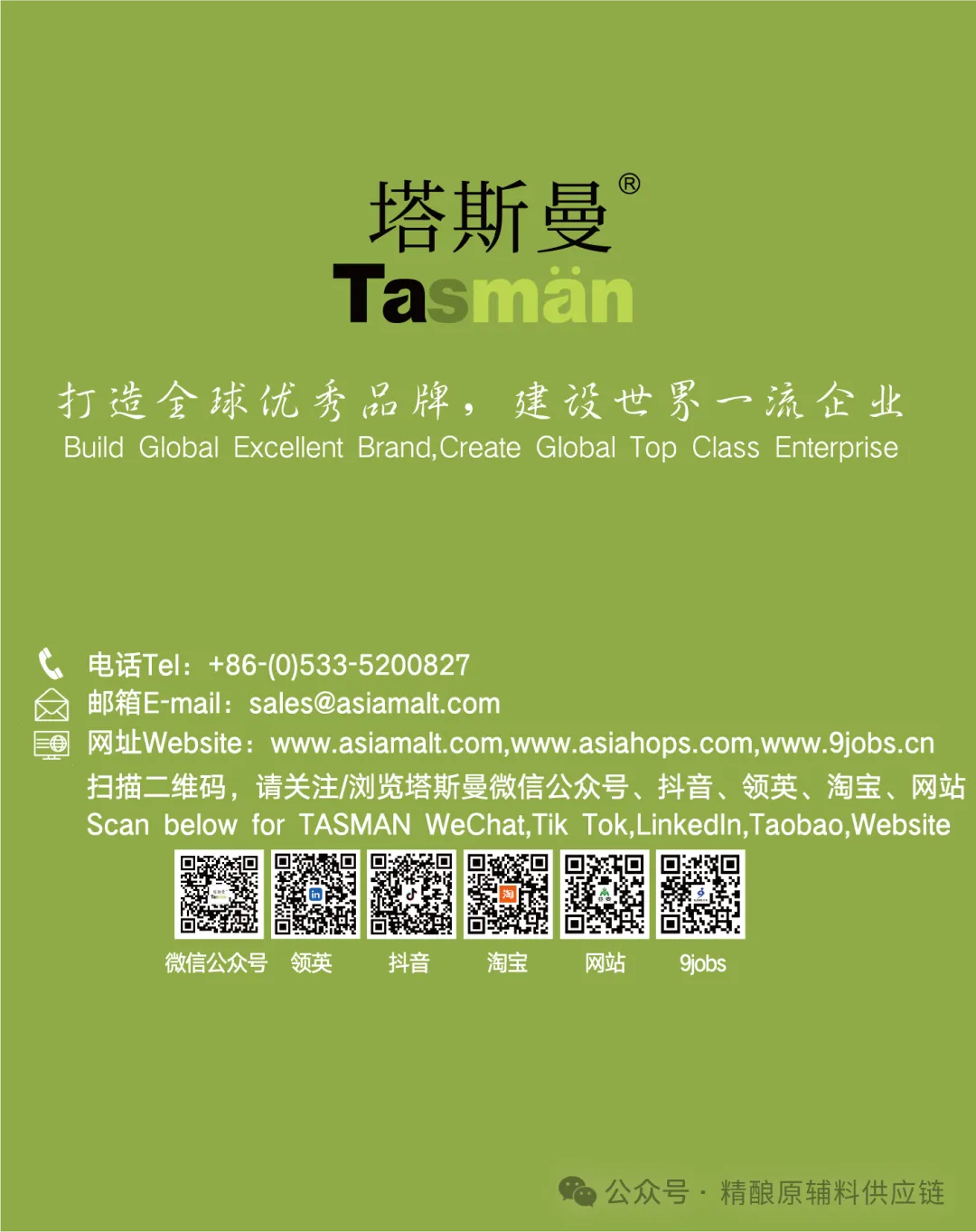 王绪涛:塔斯曼 TASMAN 产品应用经理,山东农业工程学院外聘啤酒酿造技术专家,在啤酒酿造领域拥有丰富的一线实践经验。专注于精酿啤酒工艺优化与技术攻坚,擅长解决精酿啤酒酿造全流程的技术难题,可通过现场工艺诊断或远程技术支持为精酿啤酒企业提供定制化解决方案。