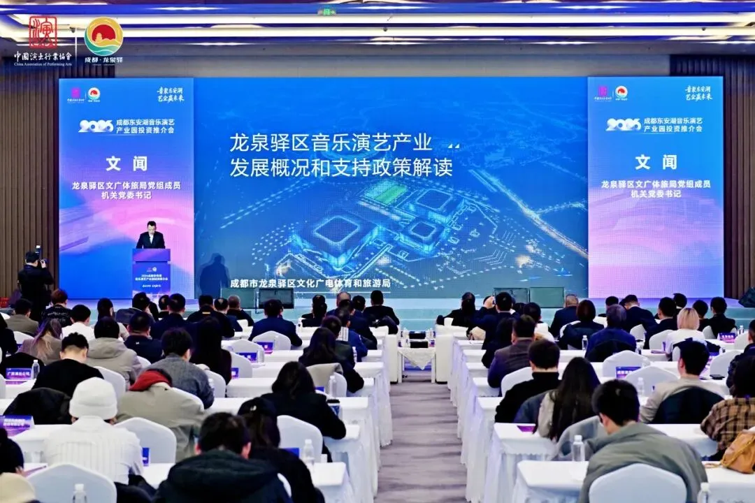 本次会议通过精准对接,向来自全国各地的音乐演艺企业全面展示了龙泉驿区的产业生态、政策优势与投资价值。会上,北京京奇非凡影视文化有限公司等24家企业与园区运营主体成都经开文旅发展有限公司签订了落地合作协议,为龙泉驿区音乐演艺产业协同发展注入了强劲动能。