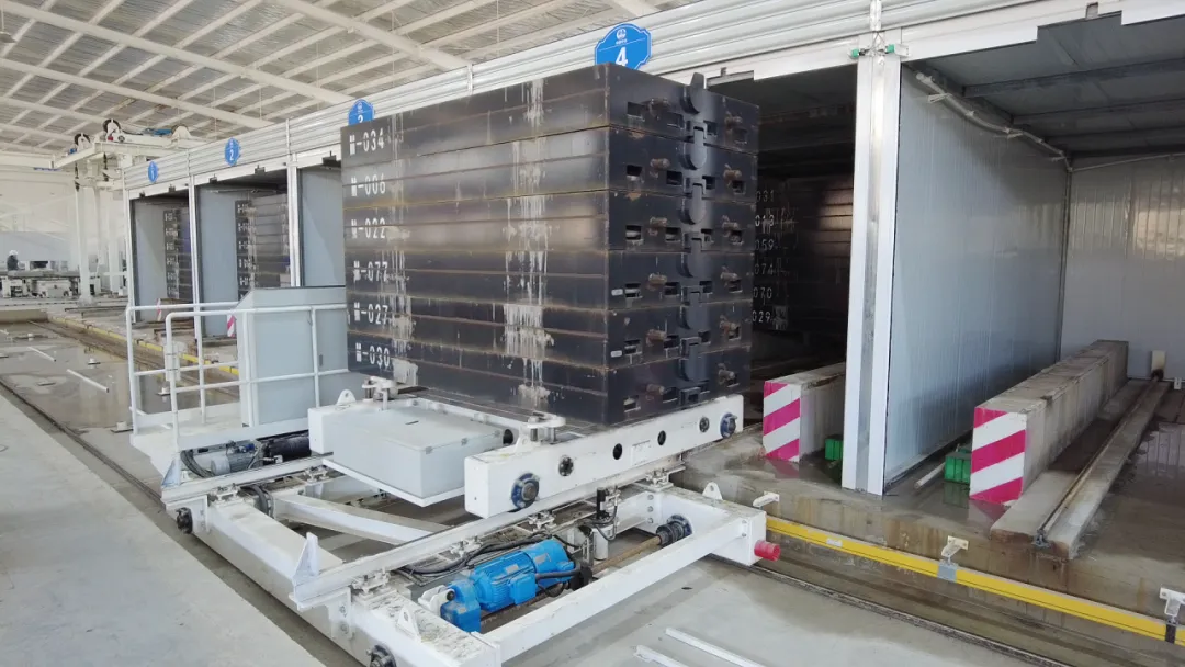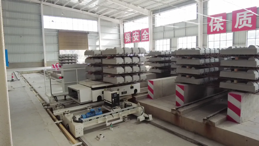 全过程自动控制,系统精准定位,通过中央子母车运送模具出入养护池,更加安全高效。